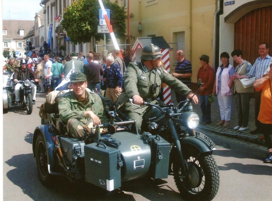 Das Motorrad fahren war für die meisten Menschen nicht möglich und die die fahren mussten trugen die Feldgraue Uniform der Wehrmacht. Schwein als Uffz. auf Zündapp KS750