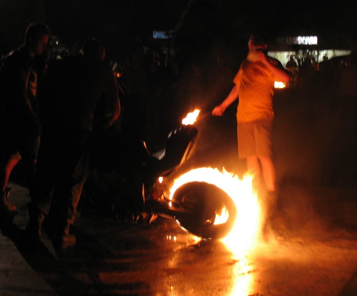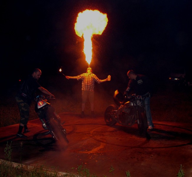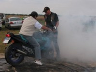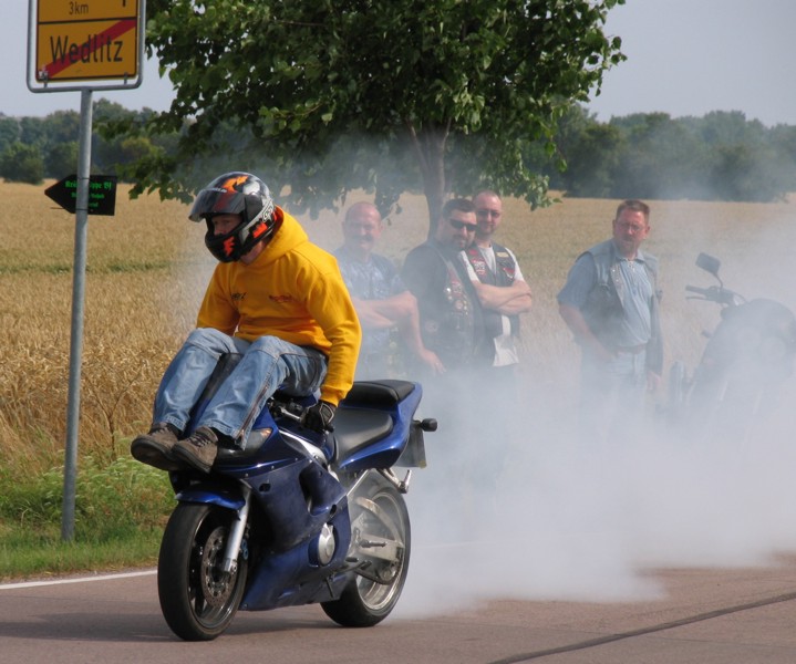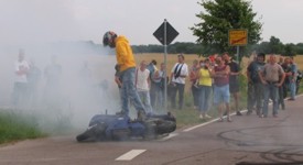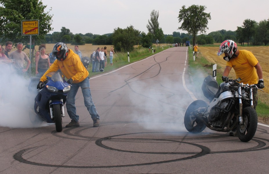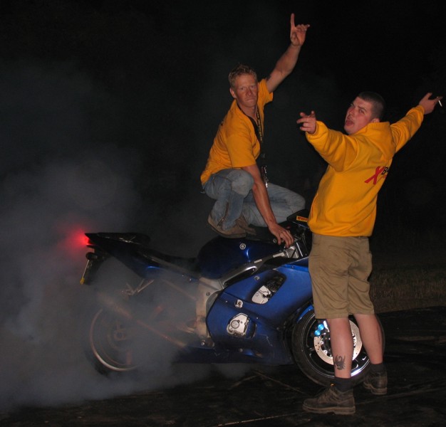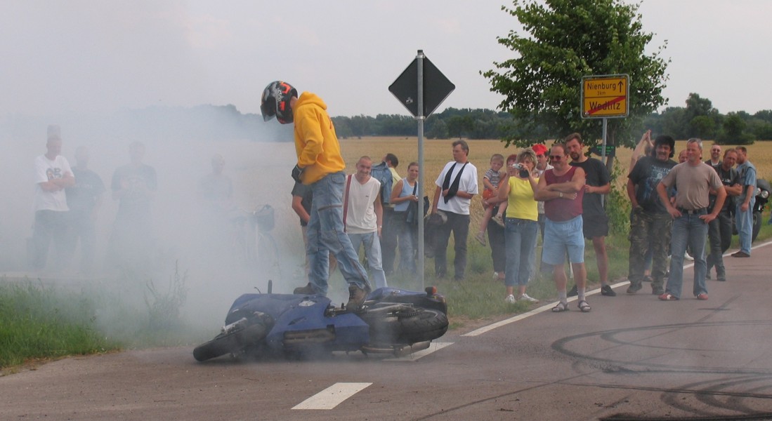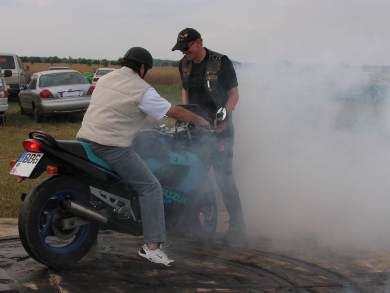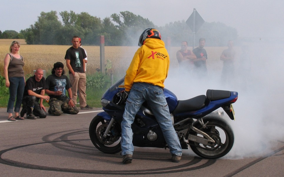 Wir konnten gerade noch rechtzeitig eine Ausfahrt machen, bevor die X-BOYZ am Samstag die Straße und die Burnplatte einnebelten. Wir hätten das Partygelände nich wiedergefunden bei dem Qualm.