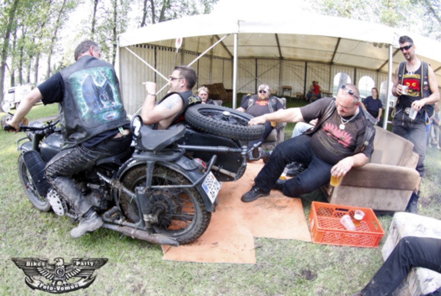 Freitach nach der Kleje jehts los. Nach Biere isses nich weit, anne jute Jelejenheit ma willer mitm Jespann zur Party zu fahren. Vor Ort jehts glei anne Bar, erstma an Bier zischen. Zelt ufbauen jeht dann schnell.