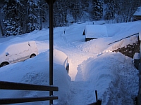Am Abreisetag haben wir mindestens einen halben Meter Schnee von den Autos gefegt und eine Schneise zur Strasse geschoben. Ins Tal gings ohne Blessuren und die Hauptstrassen waren gut geräumt.