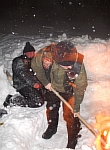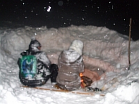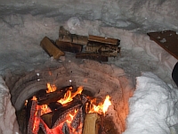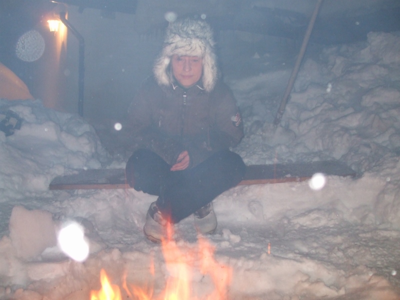 Selbst ein Lagerfeuer zu entzünden artet in Arbeit aus, der Schnee liegt an manchen Stellen 1,5 Meter hoch und es schneit schon seit 4 Tagen ununterbrochen.