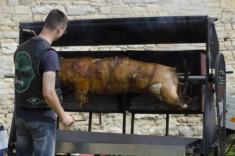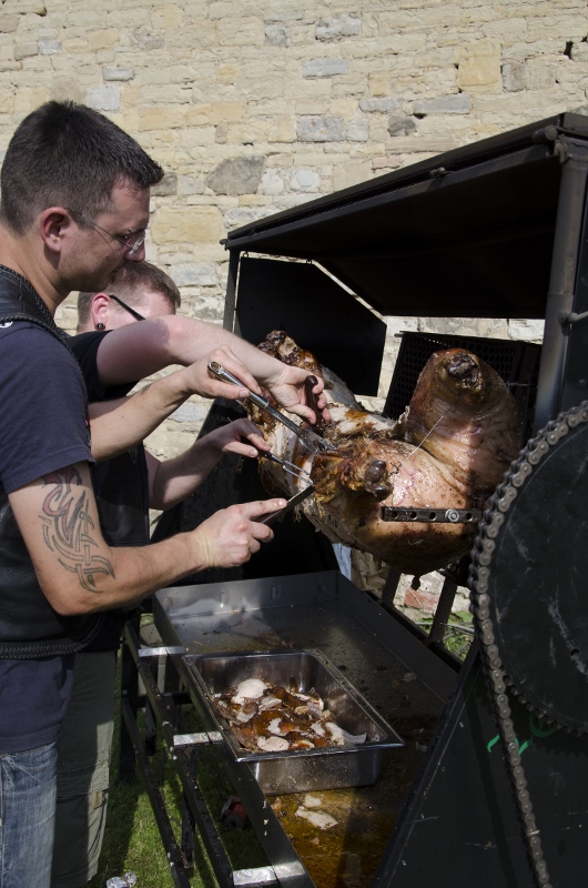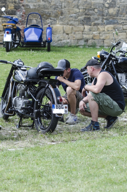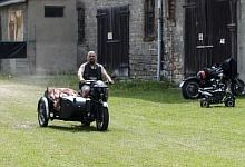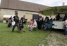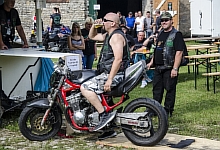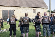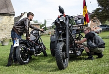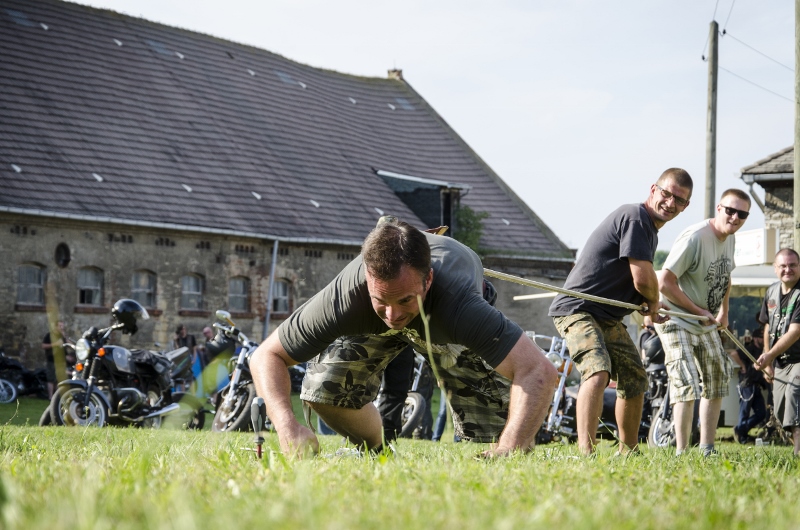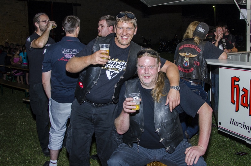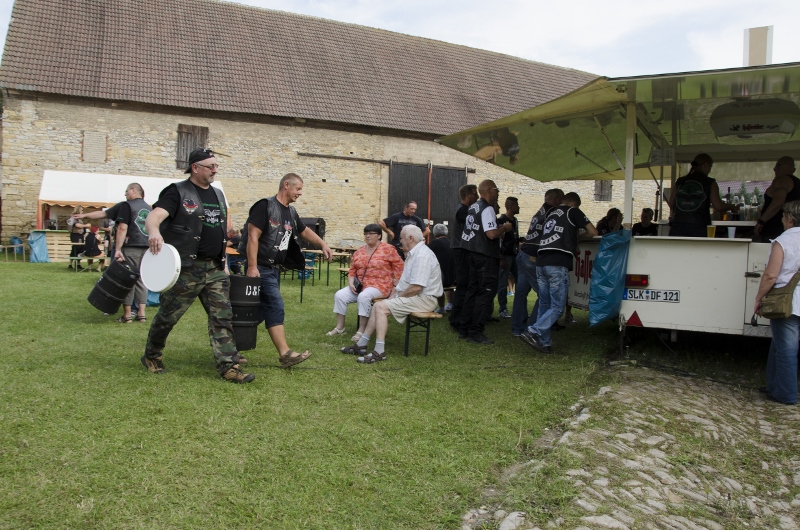 14.00 Uhr starteten wir zu unserer Ausfahrt. Ca 80 km ging es durch das Umland, 1 1/2 Stunden waren wir unterwegs. Schwein führte den Tross mit seiner Zündapp an, was das Tempo moderat hielt. Als wir wieder auf dem Partyplatz ankamen, war die Fütterungskolonne bestens auf den Ansturm vorbereitet. Jetzt konnte erst mal eine Stärkung zu sich genommen werden bevor die Spiele begannen.