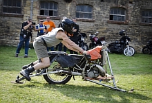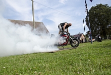Der Steffen aus der Halle in Halle, amtierender Unimoto-Weltmeister 2014 in der 200ccm Klasse, hat extra sein Sportgerät mitgebracht um auf der Wiese sein Können zu demonstrieren. Ein Wahnsinnsteil mit Unglaublich Speed und das war lange nicht am Limit bewegt, weil der Auslauf fehlte. Danke, Steffen, für die Vorführung!