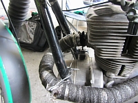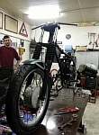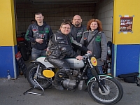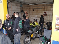 Didi hatte gerade ne rottige AWO in der Garage stehen, welche kurzerhand als Basis herhalten mußte. Vom Fahrwerk her war se fast gut ein Paar neue Federelemente und Kleinteile vervollkommnen das Chassis. Den Motor hat Schwein beigesteuert, der lag schon seit 23 Jahren im Regal. Vom Motor war bekannt, das er zu DDR-Zeiten von Schwein neu aufgebaut, ein bisschen "scharf" gemacht wurde und bis zuletzt zuverlässig (diverse Fahrten an die Ostsee und nach Brno zum Grand Prix) gelaufen ist. Der Zündmagnet war nicht mehr so frisch, deshalb haben wir leihweise von unserem Freund AWO-Thomas aus Halle/Saale den Magneten aus seiner Touren-AWO bekommen. (Danke dafür, du hast uns gerettet!) Ölwechsel, Ventile einstellen, hoffen.