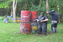In der Nähe von Gera haben wir uns, wie schon öfter, übers Wochenende bei einem Paintball-Club einquartiert. Wir wurden eingekleidet, mit den Markierern (Paintballwaffen) vertraut gemacht und schon konnte es losgehen.