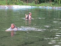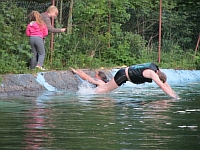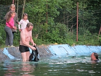 Einquartiert haben wir uns in einem ehemaligen Kinderferienlager. Das Ferienlagerfeeling ist dort noch allgegenwärtig, ... hat was. Angefangen von den Bungalows, über den Badesee bis zum Frühstückssaal, wie früher.