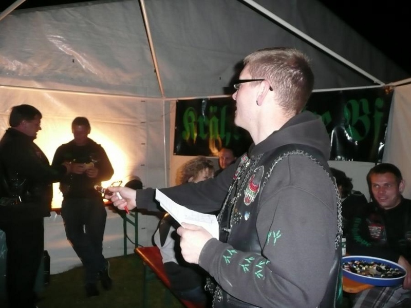 Stoffi hatte Fragen über die Geschichte der Krähenköppe, den Motorrädern der Member und Matheaufgaben zu beantworten. Jeder Fehler wurde mit Kümmerling bestraft.