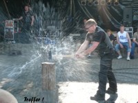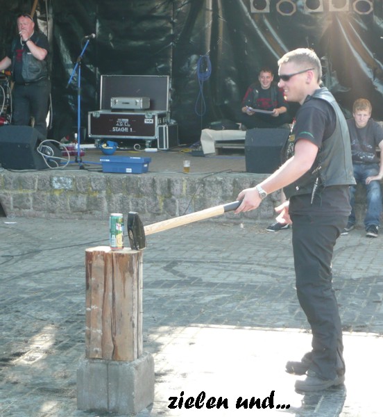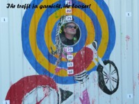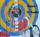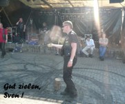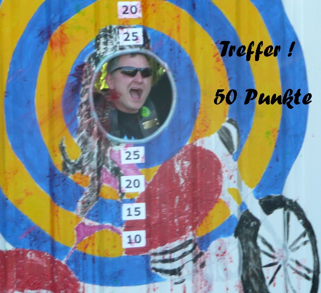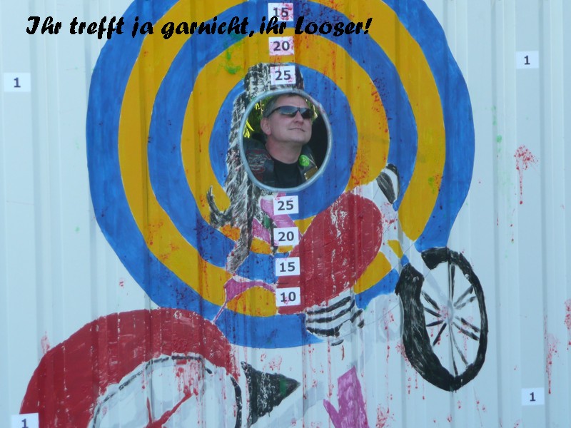 Sven war der Einzige der die Mitte (Didi) getroffen hat, voll auf die Zwölf, haben wir gelacht. Heiko hats dann noch mit Anlauf versucht und auch getroffen. Leider außer Wertung weil übertreten, hahaha übertreten!