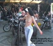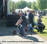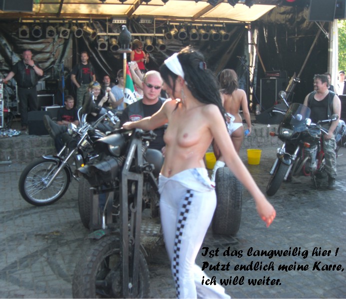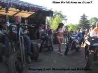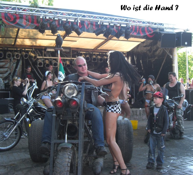 Samstag Nachmittag rief Steini wieder vor die Bühne um die Anwesenden mit Bikerspielen zu belustigen. Da wir lange nicht daran teilgenommen haben und weil wir in diesem Jahr einige Kükchen haben wurden diese kurzerhand nominiert.