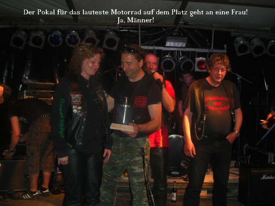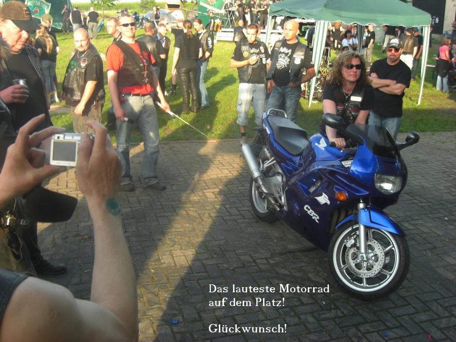In diesem Jahr wurde das lauteste Bike auf dem Platz gesucht. Wir haben Christine mit ihrer 600er CBR ins Rennen geschickt und tatsächlich, jetzt ist es sicher, die Karre ist laut wie die Hölle.