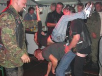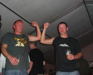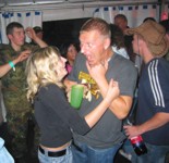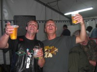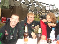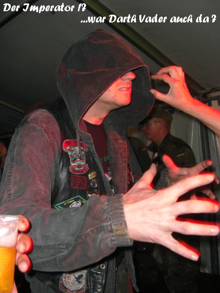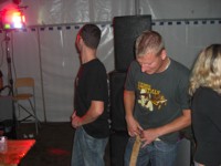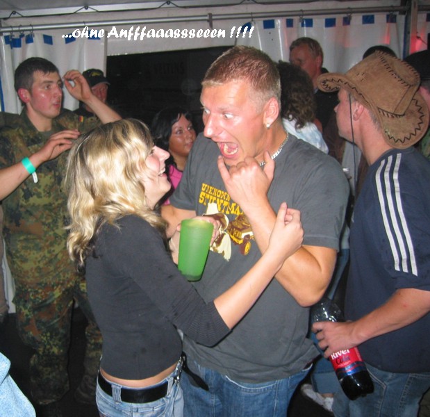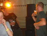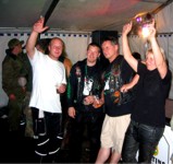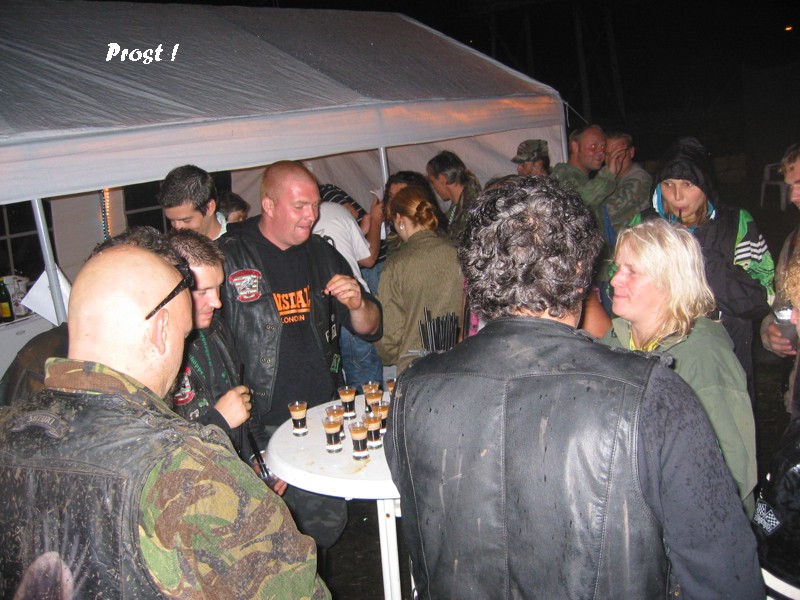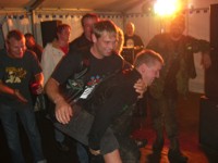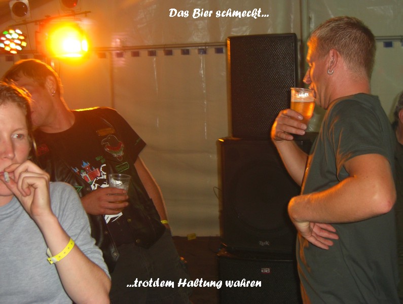 Abends haben wir Mexikanischen Bohnentopf über dem Lagerfeuer gekocht und mit Bier runtergespült. Gut gesättigt und leicht vorgeglüht gings ins Festzelt wo schon gut Stimmung herrschte. Wir konnten aber noch gut zur Steigerung der Stimmung beitragen. Ausfälle an diesem Abend: Alle vom Alk besiegt, Pappel's Nase lädiert(gestürzt).