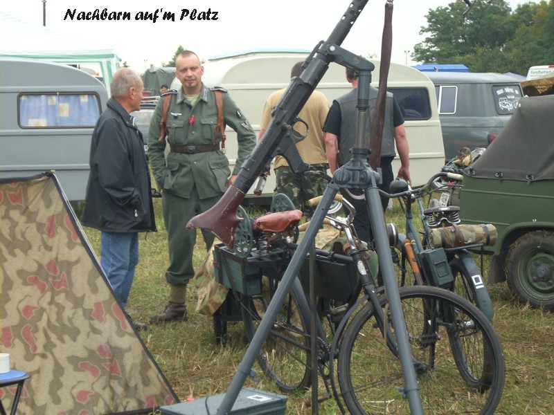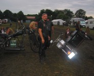 Auf dem Platz war wie immer die Hölle los, man konnte im Panzer mitfahren, es gab viele Fahrzeuge zu bestaunen und es waren auch wieder diverse Eigenbauten angetreten. Unser Trabi-Trike fand reges Interesse bei den anderen Teilnehmern und Gästen. Schnell war man in Gespräche verwickelt, musste Rede und Antwort stehen und hat dabei auch viel Interessantes erfahren. Natürlich wurde auch die eine oder Andere Runde über den Platz gedreht mit und ohne Fahrgast.