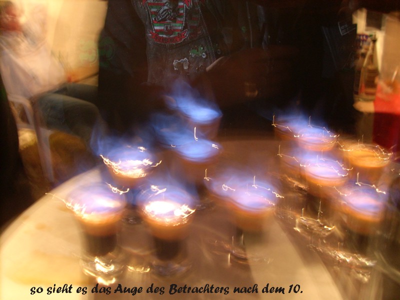 Abends gings dann wieder ins Festzelt, vorher Zwischenstation an der Cocktailbar. Didi hatte beim Barkeeper schon am Nachmittag diverse "B-52's" bestellt, da es diese am Vortag nicht gab. Jetzt hieß es standhaft sein.
