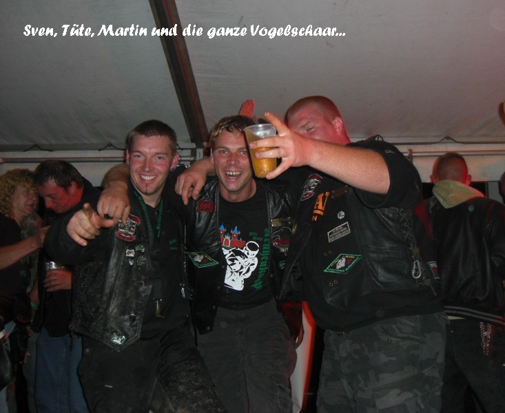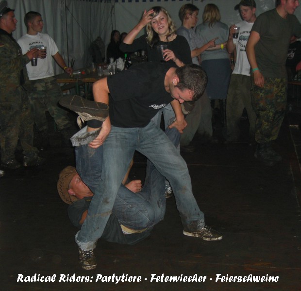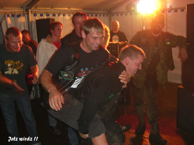 Im Festzelt tobte schon die Party als die Radical Riders zu uns stießen, aber dann ging die Post noch mal gehörig ab. Fotos sagen mehr, nur ein Kommentar : Feierschweine vorm Herrn!