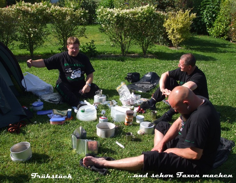Diesmal wurde nicht viel geplant, es ging einfach am 29. Juni um 5.00 Uhr los. Am selben Tag um 20.00 Uhr waren wir auf dem 4**** Zeltplatz in Port-en-Bessin. 15 Stunden, 1210 Kilometer, auf die Wiese schmeißen und Bier zischen! (1.Tag)