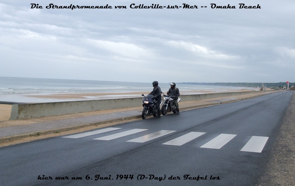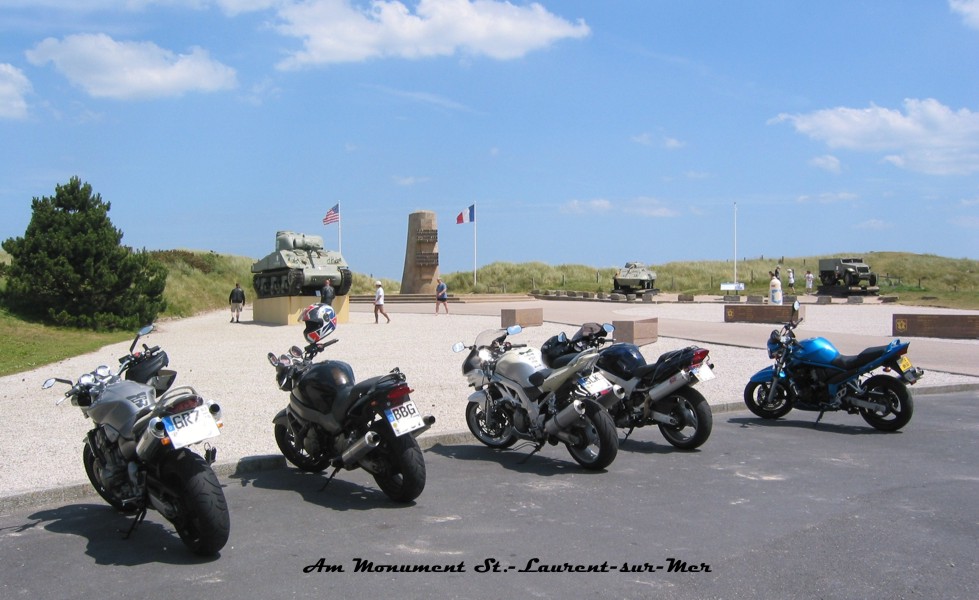 Mit der Idee, die Kriegsschauplätze in der Normandie zu besichtigen trugen sich Didi und Schwein schon länger herum, schnell wurde die Truppe mit Sven und Christian (Mutti) komplett. Die Anderen waren andersseitig verhindert. Das mit dem Motorrad gefahren wird versteht sich von selbst.