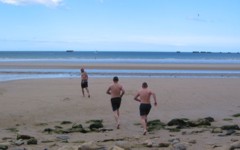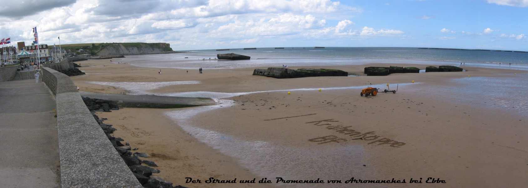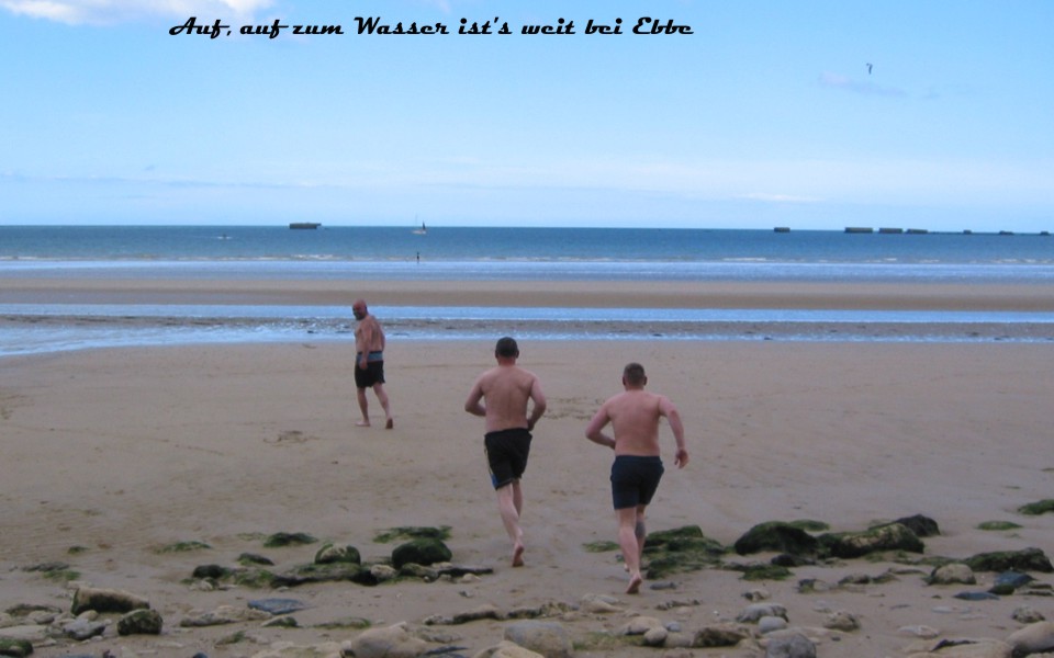 5.Tag: in Bayeux Kathedrale und den Teppich von Bayeux (gestickt im Jahre des Herrn 1080, 70 Meter lang ca 75cm breit zeigt die Eroberung Englands durch die Normannen), 360° Kino in Arromanches und endlich ein Bad im Atlantik und zum Schluß noch das Wrack-Museum in Port-en-Bessin, da gibt es Panzer und Schiffsteile zu sehen ,welche vom Meeresgrund geborgen wurden. Abends haben wir die Getränkereste "entsorgt" um nicht so viel Gepäck transportieren zu müssen wenn es am nächsten Tag nach Calais geht.