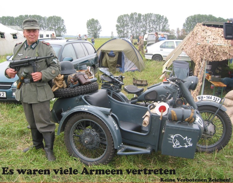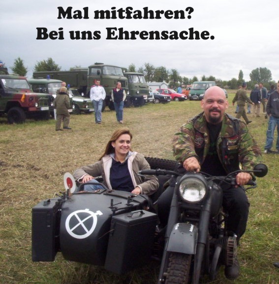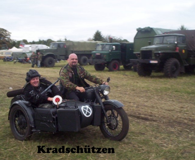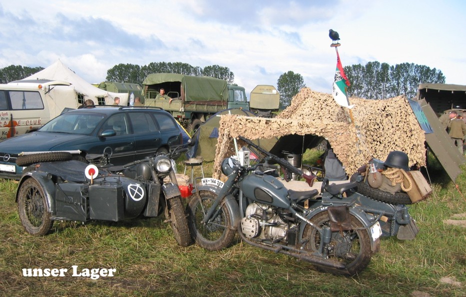 Samstag konnte man in einem Panzer mitfahren unsere Gespanne standen auch kaum still oder wurden umlagert. Auf dem ganzen Gelände gab es die ausgefallensten Fahrzeuge zu sehen. Alle hatten ihre Lagerplätze individuell hergerichtet, bei manchen sah das recht spektakulär aus. Das schöne ist, das auf Fragen bereitwillig geantwortet wird. Die Besitzer haben eben Spaß an ihrer Technik.