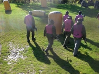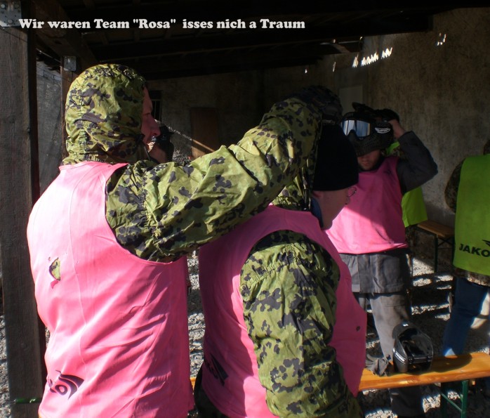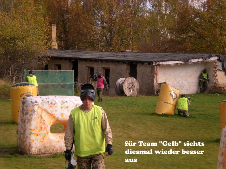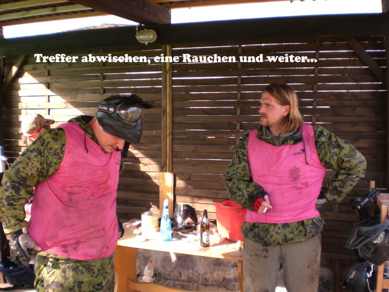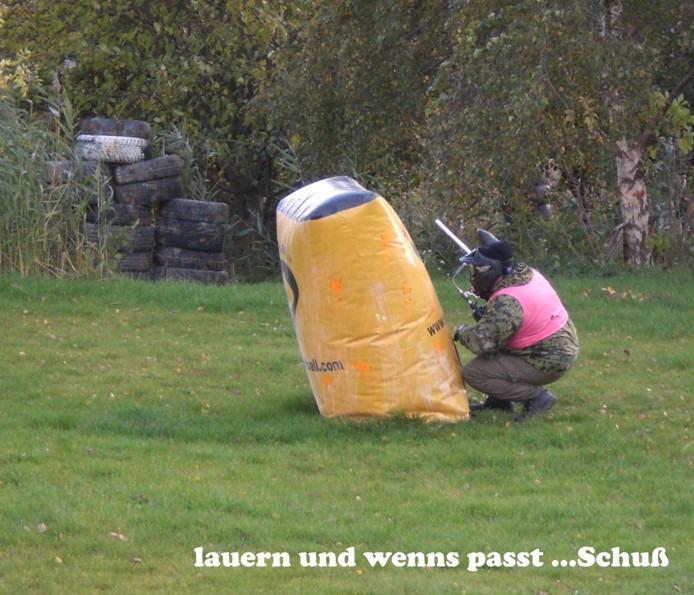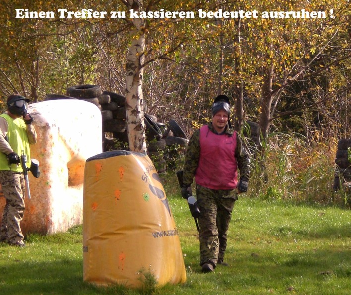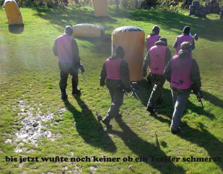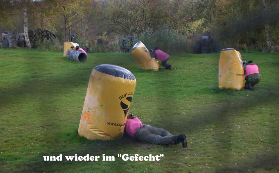 Paintball stärkt den Teamgeist, weil im Alleingang eigentlich nichts geht. Die Schmerzen sind erträglich, ein Treffer auf die gespannte Hose ist aber gu...ut zu spüren und auch zu sehen :-)).