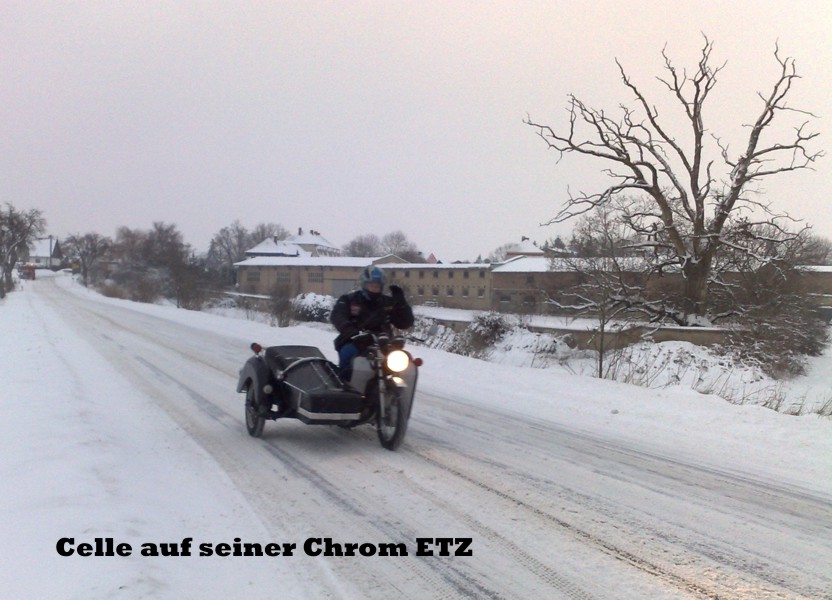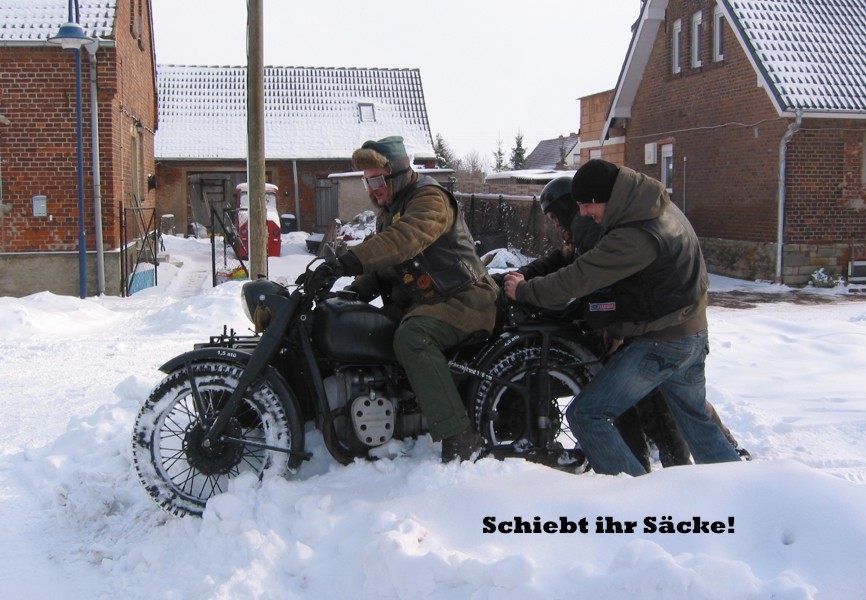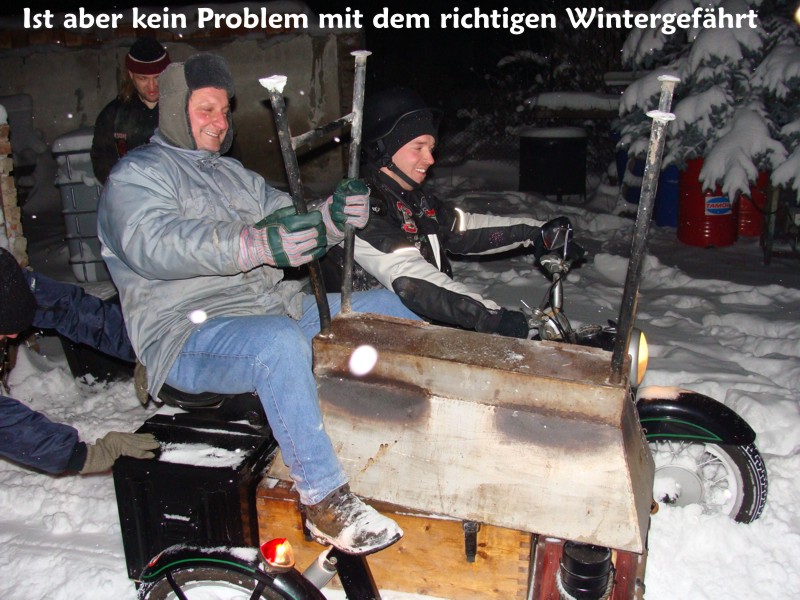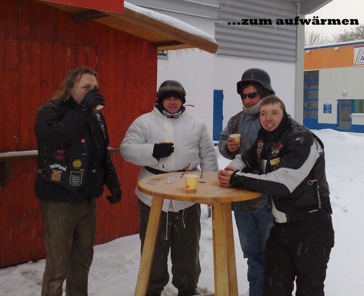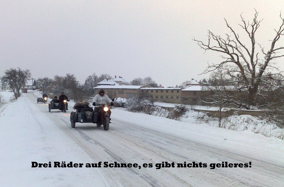 Jedenfalls war es an diesem Wochenende windig und hat geschneit, da wir ja sowieso Gespann fahren wollten ham wir das dann trotz des "gewaltigen Schneesturm" gemacht. Es war einfach nur Geil und das wir nicht erfroren sind ham wer dann am Abend mit ner Spontanglühweinparty gefeiert.